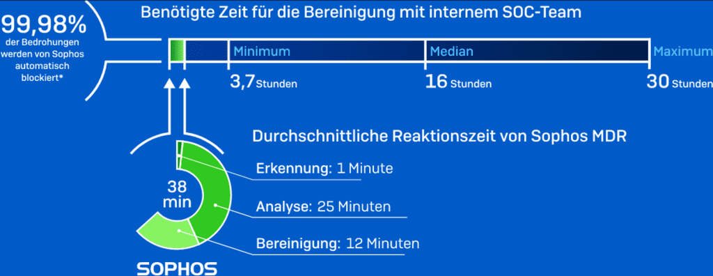 Nach der Durchführung eines Penetrationstests wurde die Sicherheitsmaßnahmen der Unternehmensgruppe an allen Standorten und in der Cloud-Umgebung durch hochmoderne Sicherheitskonzepte wie Sophos MDR und regelmäßigen Phishing-Simulationen.